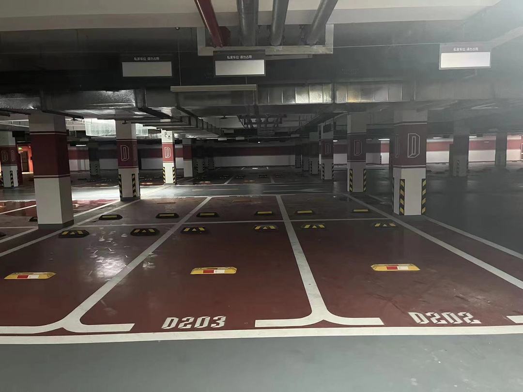 行車道采用的是1.5mm厚的橘紋環氧地坪漆,可有效降噪,耐磨防滑性更強,使用壽命更長,有效減少炫光,駕駛安全性更高。